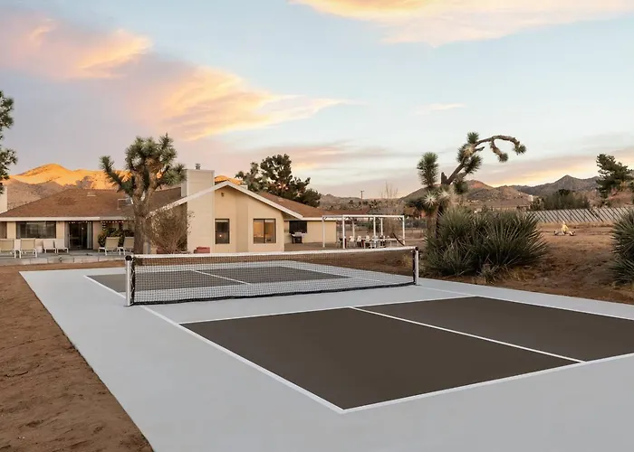Deze 3-slaapkamer Mojave Moon- Group Retreat Wpool,Spa & Pickleball Yucca Valley villa ligt binnen 4 km afstand van het Hi-Desert Nature Museum en biedt toegang tot verschillende attracties in de omgeving.